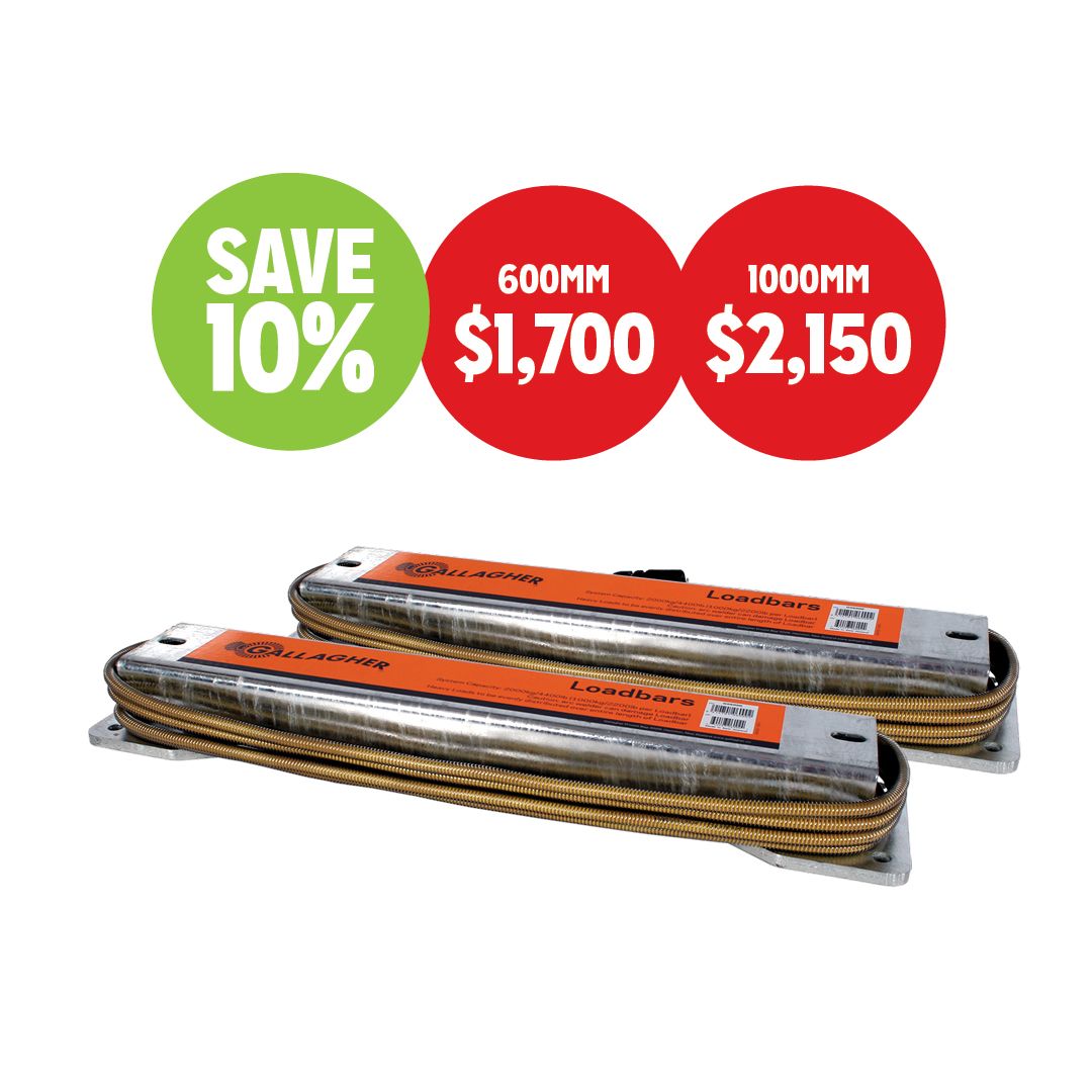 Store to Confirm Price: Gallagher Loadbars: 2,500kg, 600mm with Leads & 2,500kg, 1,000mm with Leads