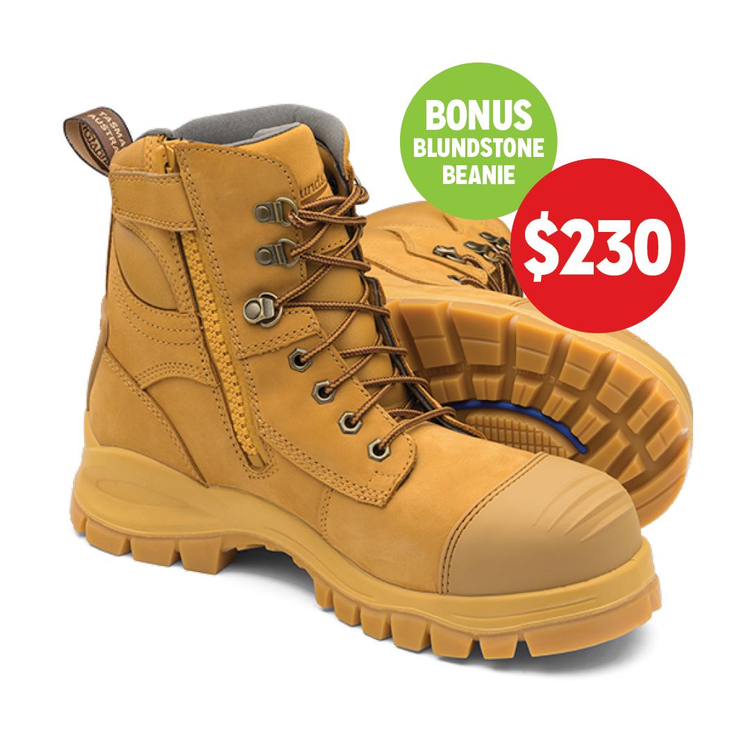 Store to Confirm Price: Blundstone 984 Stone Water-Resistant Lace Up/ Zip Ankle Safety Boot